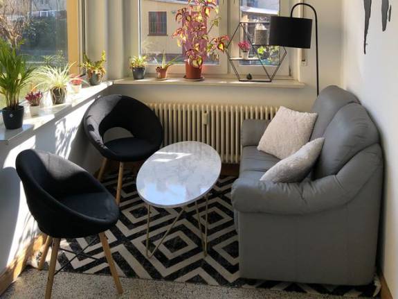 Unser Interkulturelles Wohnprojekt bietet eine Therapeutische Wohngemeinschaft für sieben Bewohner*innen (mit einem jeweils eigenen Zimmer), denen neben einer großen Gemeinschaftsküche ein Gemeinschaftsraum mit angrenzender Loggia, eine Terrasse und ein Garten zur Verfügung steht. Auf jeder Etage existiert ein Badezimmer zur jeweils gemeinsamen Nutzung.
