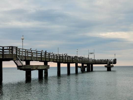 Vor dem Abendessen hatten wir noch genug Zeit für einen gemeinsamen Spaziergang zum sehr nahe gelegenen Salzhaff und die angrenzende Uferpromenade. Das Abendessen bestand aus einer Auswahl an mehreren verschiedenen warmen Speisen, die man sich vom Buffet holen konnte. Auch das Frühstück am nächsten Morgen war sehr reichhaltig und bot für jeden Geschmack etwas.